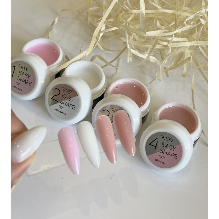 Ανακαλύψτε την τεχνολογία «Intelligent Modelling» με το EASY SHAPE Builder Gel BB COVER 04 από τη νέα σειρά EASY SHAPE της Ritzy Nails. Αυτό το self-levelling builder gel προσφέρει τέλεια διαμόρφωση νυχιών χωρίς επιπλέον λιμάρισμα ή υπερβολικό προϊόν γύρω από τα πετσάκια.
