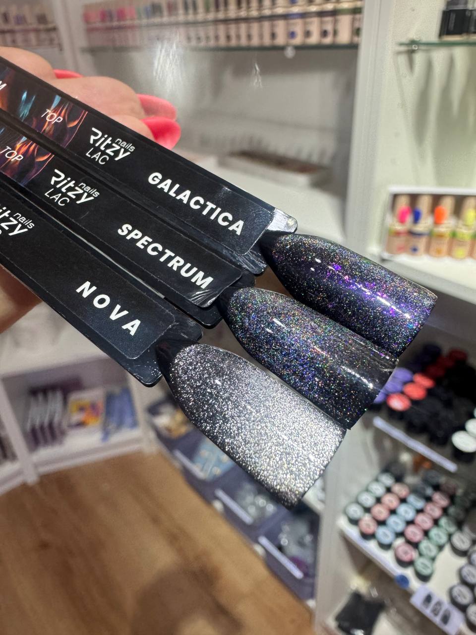 Επαγγελματικό top gel με μείγμα από holographic shimmer και μικρο-foil aurora pieces. Μπορεί να χρησιμοποιηθεί είτε ως απλό top coat για εντυπωσιακή λάμψη, είτε σε συνδυασμό με μαγνήτη για τη δημιουργία cat-eye εφέ και μοναδικών οπτικών σχεδίων. Σχεδιασμένο για μεγάλη διάρκεια, εκθαμβωτική λάμψη και αντοχή.